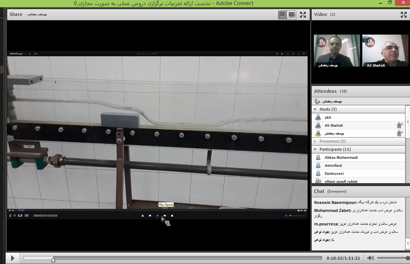 در این نشست با توجه به تجربیات اعضای هیأت علمی، پیشنهادات مختلفی جهت برگزاری هر چه بهتر دروس عملی بصورت مجازی ارائه گردید و نقاط ضعف و قوت سامانه مجازی در برگزاری این دورس مورد بحث و بررسی قرار گرفت.