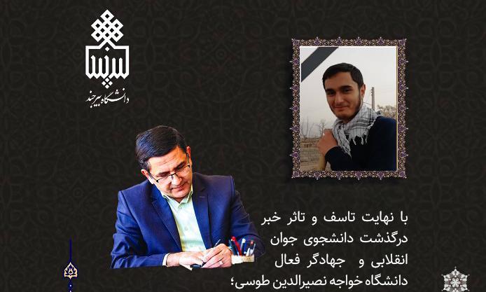 با نهایت تأسف و تأثر خبر درگذشت دانشجوی جوان انقلابی و  جهادگر فعال دانشگاه خواجه نصیرالدین طوسی