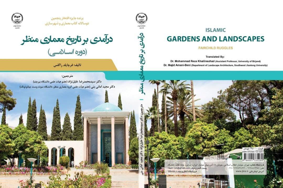 به گزارش روابط عمومی و اطلاع‌رسانی دانشگاه بیرجند؛ کتاب درآمدی بر تاریخ معماری منظر دوره اسلامی با عنوان Islamic Gardens and Landscapes توسط دکتر Farichild Ruggles استاد گروه معماری منظر دانشگاه ایلینوی نگاشته شده است. پیش از این کتاب به زبان‌های ژاپنی و ترکی استانبولی ترجمه شده بود.