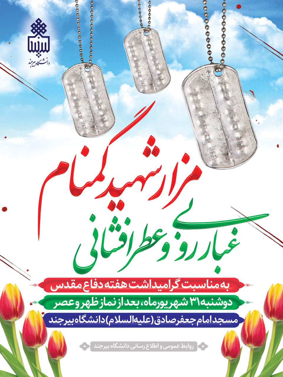 مراسم غبارروبی و عطرافشانی مزار شهید گمنام به مناسبت گرامیداشت هفته دفاع مقدس ۳۰ شهریور ۱۴۰۴ | ۱۲:۳۶ کد : ۳۱۸۴۶ اطلاعیه ها اخبار دانشجویان اخبار کارکنان اخبار اساتید ارسال به دیگران نام شما ایمیل شما ایمیل دریافتکننده ارسال انصراف تعداد بازدید:۶۶۶